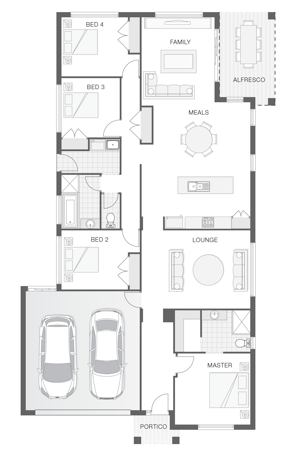 The Amity home design considers both simplicity and convenience for modern family living. Featuring a generous open plan living zone including kitchen, meals and family rooms with adjoining alfresco dining area, entertaining has never been so easy. The master retreat with ensuite and walk-in-robe is cleverly positioned at the opposing end of the home to other bedrooms, providing great separation and privacy for the entire family.