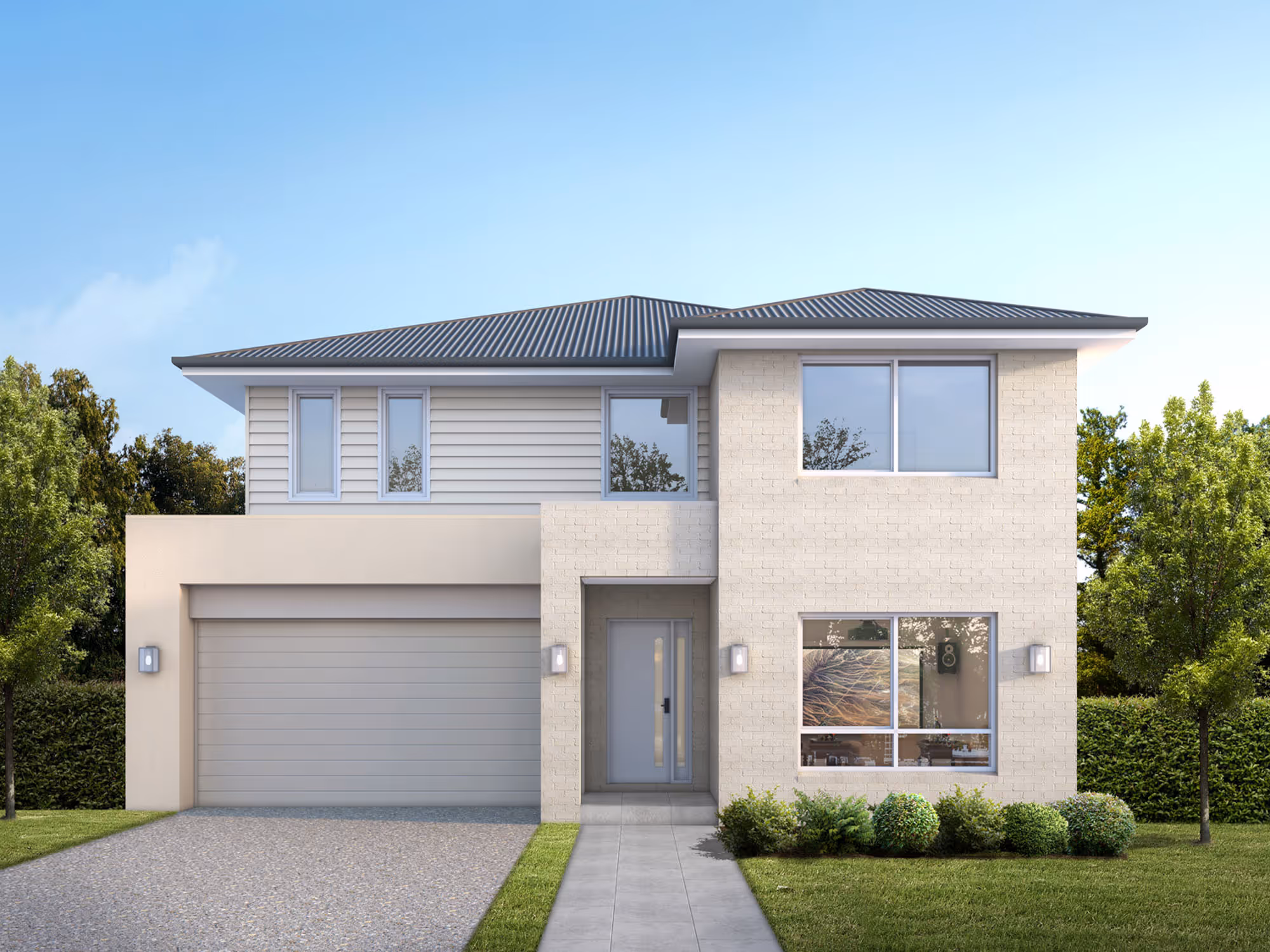 Introducing the Belmore home design, where practicality seamlessly merges with indulgence. This exquisite residence exudes sophistication, beginning with its breathtaking double-storey entrance. It offers luxurious guest quarters and a lavish master retreat. Spanning across two levels, this remarkable home boasts an enchanting entertainment hub on the lower floor. It showcases a spacious kitchen with a Butler’s pantry, a generous dining and living area, an additional media room, and a captivating alfresco space. Upstairs, the opulent master retreat spans the entire width of the home, showcasing a stunning ensuite with a double vanity and an expansive walk-in wardrobe. The upper level also presents a second media room, along with three generously sized bedrooms, one of which features a private balcony.
