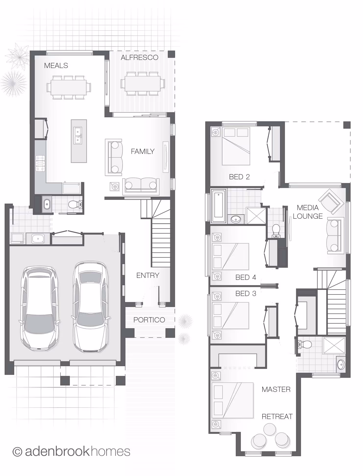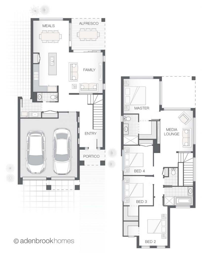 The Deakon home design is compact but punchy. With an outdoor alfresco area that merges seamlessly with the kitchen, dining and living spaces the lower level is certain to accommodate the entire family. The upper floor provides a stylish layout with master retreat including ensuite and walk-in-robe sensibly separate from additional bedrooms and media room creating a feeling of privacy and space in a compact footprint.