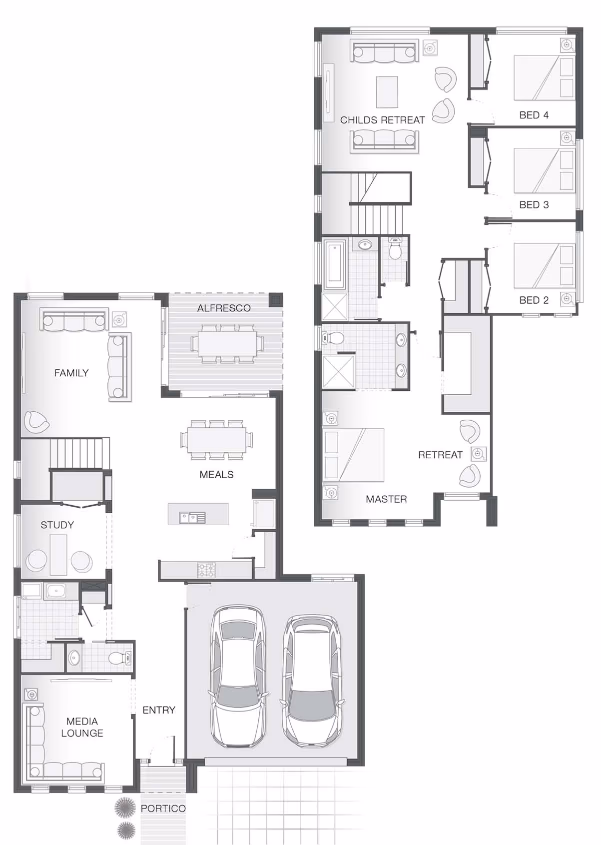 The Hadley home design leaves absolutely nothing to be desired, perfectly balancing entertaining, living and study zones in generous proportions. The lower level boasts an alfresco, plentiful kitchen, family and living zone for all the family moments yet cleverly includes quiet zones for study and time alone. The upper level comprises a spacious master retreat with ensuite and walk-in-robe, additional bedrooms and a retreat creating the ideal space to escape and unwind.