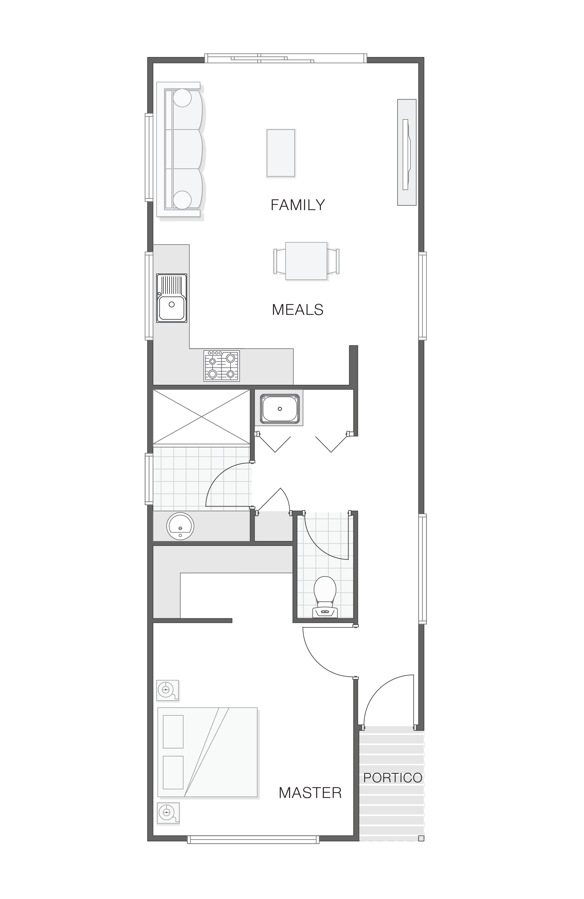 The Metro granny flat design is functional and purposeful in layout;providing good separation between the main living space and the private master suite. Simplicity and convenience are on offer here with everything you could come to expect from a petite yet punchy granny flat. Providing a great dual living dwelling;suitable for a range of purposes.