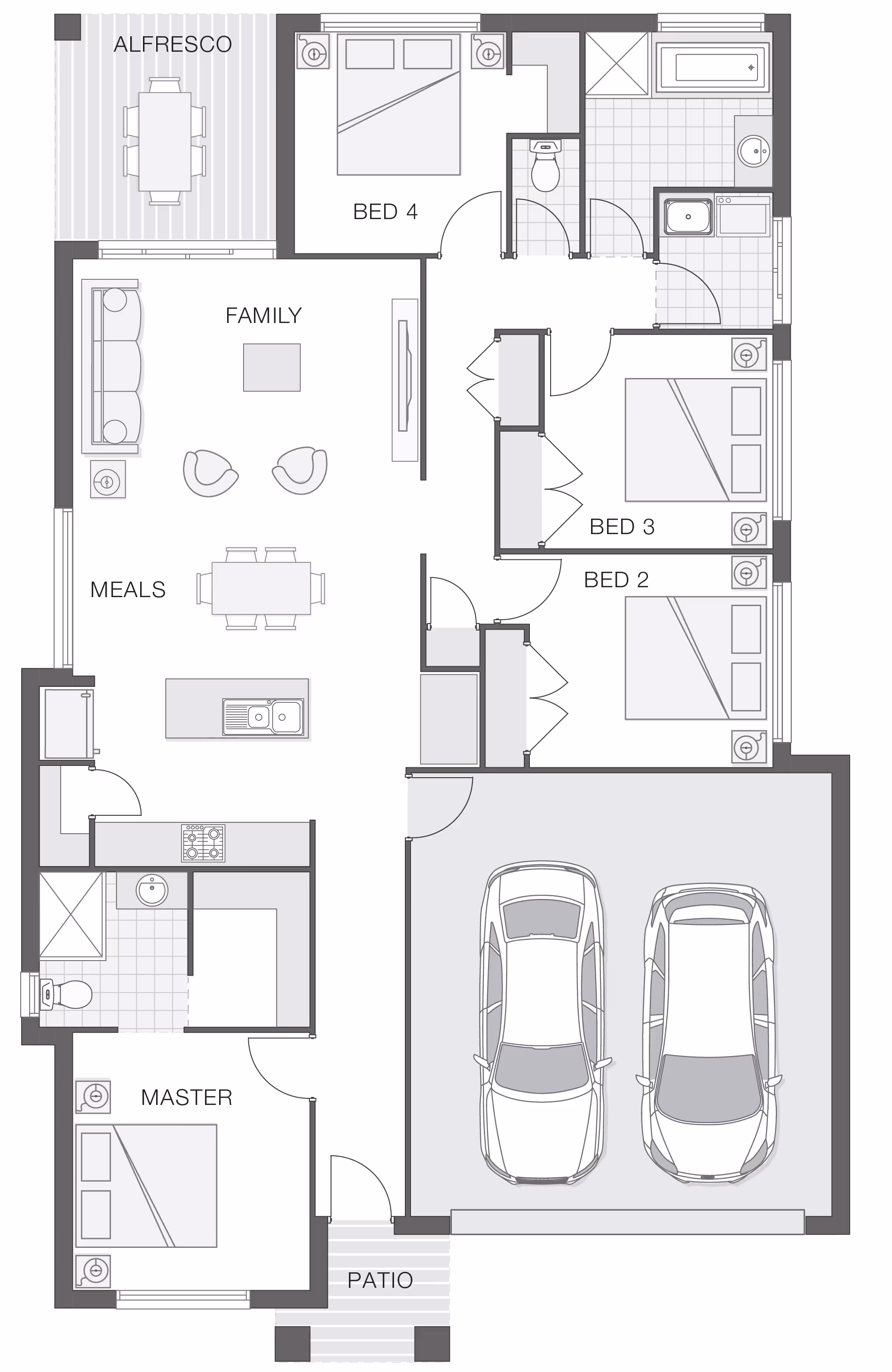 The Willow home design is popular and practical for the modern family that loves to entertain and enjoy each other’s company. The light and bright open plan design provides a great entertaining space within the hub of the home that incorporates the alfresco area, the kitchen and family room and meals zones. The generous master retreat enjoys an ensuite and walk-in-robe while the children’s wing provides great separation and is ideal for creating a safe and secure area for the kids.